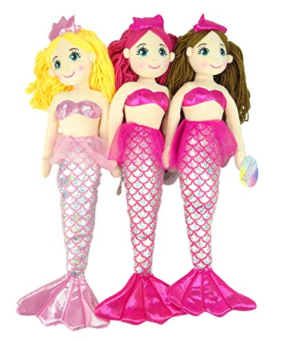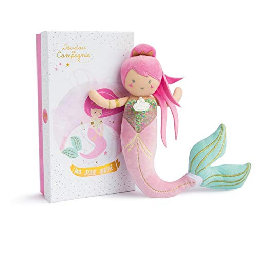Toute douce et miroitante, la poupée sirène Doudou se décline en bleu ou en rose avec une jolie queue écaillée scintillante ou en version doudou ultra soft.